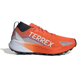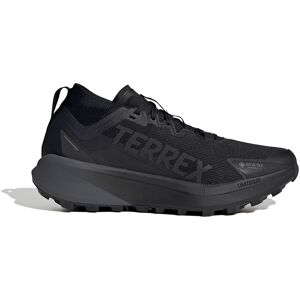 Waterproof trail running shoes made for training runs and big miles, made in part with recycled materials.Responsive and supportive, these Terrex Agravic trail running shoes are built for logging miles and adventurous days on the trail in wet, muddy conditions.A waterproof, breathable GORE-TEX membrane seals out wet conditions to keep your feet dry, and you focused on the trail ahead.Abrasion-resistant overlays add trail-proven durability, and the gusseted tongue seals out debris.A Lightstrike 2.0 midsole provides responsive cushioning for stability and comfort on rough terrain, and the rocker shape promotes a smooth roll-off for a fluid pace.The Continental™ Rubber outsole with 4 mm lugged tread maintains secure footing across roots and rocks, wet or dry. This product features at least 20% recycled materials.By reusing materials that have already been created, we help to reduce waste and our reliance on finite resources and reduce the footprint of the products we make.FEATURES:-Regular fit.-Lace closure.-Mesh upper with TPU overlays.-GORE-TEX Invisible Fit membrane with gusseted tongue.-Lightstrike cushioning.-Moulded sockliner.-Weight:294 g (size UK 8.5).-Midsole drop:8 mm (heel:38 mm / forefoot:30 mm).-Continental™ Rubber outsole.-Contains at least 20% recycled content.-Technology Concept:- LIGHTSTRIKE.