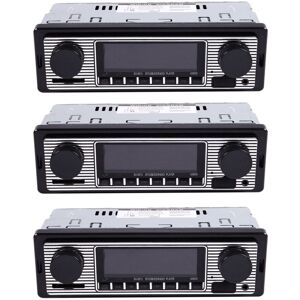 Off time display function Digital high-quality FM stereo radio, Preset 18 stations (frequency: 87.5-108 MHz) Support USB / SD / MMC card reader Support Audio: MP3 / WMA / WAV, etc. Support folder function Support breakpoints and ID3 Play Support Remote control Rotary Volume Control MP3 randomized, 10 track up / down playback Electronic control volume treble, bass, balance and fader Mute and Loudess control L / R audio output jacks 4-channel high power output (4 loud speaker) size: 178 mm (W) * 50MM (H) * 68mm (D) Overall dimensions: 188 mm * 58mm (H) Supply voltage:12V PC interface type:ISO Colour: Black Material: Plastic + Metal Package Contents: 3 x car MP3 player 3 x remote control 6 cable 6 x keys to install 3 x English user manual Only the above package content, other products are not included. Note: Light and different displays may cause the color of the item in the picture a little different from the real thing. The measurement allowed error is +/- 1-3cm.