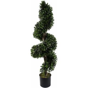 A lifelike replica of a grand spiral buxus tree, standing tall at an impressive 150cm. Crafted with UV resistant materials, this masterpiece is meant to grace your outdoor space with elegance. Adorned just like in our stunning photos, it measures 150cm in height and 45cm in width and depth. With fixed branches that require no adjustment, it comes in a plastic weighted pot measuring approximately 18cm in diameter and 14cm in height. Delicately potted in a simple plastic container, this tree is all set to be showcased. Elevate its charm by placing it inside a larger planter and covering it with soil, bark, or gravel for an even more authentic look. Leaf Outdoor Artificial Topiary Tree 150cm Sprial Buxus UV Resistant Botanik in Green