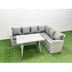 Set Dimensions: 2 x Sofa with double armrest: 177W x 65D x 66H cm 1 x PC Rising dining table: 140L x 80W x 68/48H cm (height up 68, down 48) Dark grey mixed rattan with dark grey fabric .Color may some difference due to light or monitor .we are unable to return the item due to color problem. Fimous 6 Seater Outdoor Rattan Sofa Set Garden Furniture Adjustable Rising Lifting Dining Table Dark Grey