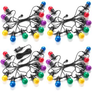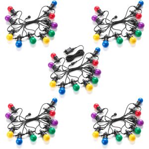 Fancy creating a fun, colourful, carnival atmosphere in your garden or home? Our multi-colour LED festoon string lights from Dakota Fields come in 5-metre sections of 10 bulbs that you can connect together to create a string up to 30m long! Choose from: 5m (10 bulbs) 10m (20 bulbs) 15m (30 bulbs) 20m (40 bulbs) 25m (50 bulbs) 30m (60 bulbs) With 5m (16.4ft) of unlit power cable attached to a plug-in transformer to reach nearby sockets with ease. 5 colours on display Each lamp contains a 55-lumen LED in a coloured bulb to give you a repeated pattern of yellow, green, red, blue and purple. A perfect colour combination to create an instant party or funfair feel. And with each bulb being spaced only 50cm apart, it gives you high-density lighting to help saturate your area with a rich display of colours that really pop in the evening. Use indoors or out The lights are IP44 weatherproof rated, making them ideal for hanging outdoors. They’ll work just as well indoors too. Chain them across a fence, post, gazebo or wall. You can use the cable itself to support the lights, or use the optional hooks to hang the bulbs exactly how you want them. Connect strings together to increase or decrease the light chain No matter which option you buy, you’ll always receive these festoon LED lights in lengths of 10 bulbs spanning 5 metres of cable. You can just use one or connect up to 4 strings together for a 30m length of 60 multi-colour bulbs. Don’t be stuck with one size. Make your colour festoon lights as long or short as you need them for parties, BBQs and events - or even as a permanent display. Multi-colour LED festoon chain lights by Dakota Fields Enjoy your LED festoon lights with Dakota Fields quality backed by a 2-year warranty. Specifications: Each string is 5m of 10 lights Order packs of 1-6 (5m of 10 lights, up to 30m of 60 lights) High-density: 1 lamp per 50cm IP44 weatherproof for outdoor use Plug-in transformer must be used indoors or in suitable weatherproof socket Additional 5 metres of non-lit power cable 5 repeating festoon colours - yellow, green, red, blue and purple 55 lumens per bulb hanging clips included. Dakota Fields Size: 30m LED