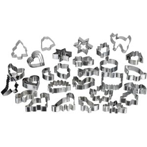 Embark on a culinary adventure with these delightful mix and match cookie cutters, designed to ignite your baking inspiration. Crafted from 36 sturdy stainless steel pieces, these versatile tools transcend the boundaries of mere holiday baking. With a plethora of themes to choose from, they seamlessly transition from Christmas cheer to the whimsy of children's birthdays, the warmth of autumn, or the thrill of Halloween. Cookie Cutters in Set of 36 - In different sizes: approx. 4-8 cm - Height of each cookie cutter: approx. 2 cm - Weight per cookie cutter: approx. 7-16 g - Material: Stainless steel - Colour: Silver Biscuit Cutters for All Seasons - Baking accessories in a set of 36 in various sizes and shapes - Not just for Christmas - suitable all year round - Stars and hearts in 3 sizes for birthday parties etc. - Different dinosaur biscuit shapes for baking fun with children - Owl, squirrel, hedgehog, leaves and acorn for autumn - Bat, ghost, witch's hat, tomcat, candy and moon for