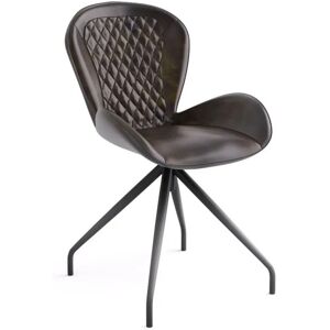 This stylish chair offers a sophisticated look to any dining room. Upholstered in dark grey faux leather, with black metal legs and a high back, this chair brings a classic yet modern touch to all decors. The durable construction ensures that it can be used for years to come. Enjoy in comfortable, luxurious seating with this beautiful piece.