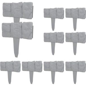 【Material】 UV and weather resistant fence can extend the lifespan. Impresses with its fashionable stone look. Improved and updated, now with a reinforced design.【Size per fence】 Total height - 23 cm, spike height - 13 cm, length - 25 cm. 【Installation】 No digging, cutting, or preparation required. Simple, interlocking pieces that are simply pushed into soft soil. 【AESTHETIC】 Keep your lawn and flowerbeds neatly separated with this attractive hammer-in edge, which has a cobblestone effect.【Scope of application】 The easy-to-connect fences are perfect for framing beds and green spaces in your garden.