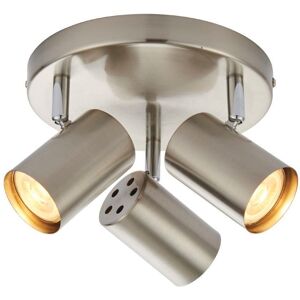 This Saxby Arezzo three light plate ceiling spotlight is finished in satin chrome and chrome plate.ᅠ The lamps are fully adjustable and are compatible with GU10 LED lamps.ᅠ The lights have a 350 degree rotation as well as a 90 degree tilt.ᅠ They would make an attractive and practical addition to any room. Product code: 73688 FEATURES: * Finished in satin chrome and chrome plate * Dimmable * Compatible with GU10 LED lamps * Matching items available (please see website) * Fully adjustable * Class 1 earthed * 2 year warranty SIZE: * Diameter - 240mm * Projection - 150mm BULBS: * Takes 3 x 7 watt max GU10 LED bulbs - Not included.