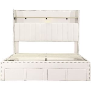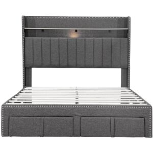 This upholstered ottoman bed has ample storage space, you can store blankets, sheets, toys and other items under the hydraulic bed, headboard storage space and side pockets design to keep your bedroom organized. The bedside is equipped with Type-C interface and USB port to ensure that your devices are always charged and ready to use. Metro Lane