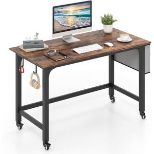 Introducing our home office desk - the ultimate solution for a clutter-free workspace! With 2 spacious drawers and a convenient headphone hook, this computer desk offers plenty of room to organize your essentials, from files and supplies to headphones and bags. But what truly sets this PC desk apart is its innovative design. The removable drawers allow you to personalize the clearance between the shelf and drawer, ensuring a perfect fit for your unique needs. Plus, the robust metal pipes and triangular reinforced structure guarantee unmatched durability and stability, making this desk a long-lasting investment. Versatile and practical, this computer desk with storage can be your go-to workstation, study table, or gaming setup. Transform your home office into a stylish haven today! Costway 120 cm Home Office Desk Writing Desk Modern Computer Workstation with 2 Drawers in Brown