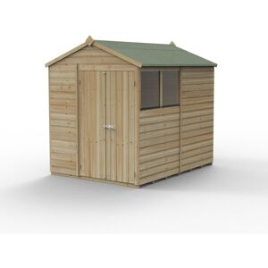 The Beckwood Shiplap Pressure Treated 5x7 Reverse Apex Shed with 2 Windows - Double Door from Forest has traditional and sturdy design and is built in Britain for Britain. Built to withstand the elements, the shed can store anything from a simple spade to bikes, fishing equipment or outward bound gear! The shed's improved FULLY modular design features smaller sections, same size panels are fully interchangeable. The shed is made using robust, interlocking, weather-beating pressure treated shiplap cladding throughout, giving it a watertight seal. Supported by 30%-thicker framing than found on most wooden sheds, this 5x7 shed is constructed to last. The pressure treatment that has been applied gives this shed a 25-year anti-rot guarantee, giving you complete maintenance freedom, annual preservative treatment is NEVER needed! Most other sheds require treatment once built then yearly thereafter. Rather than the more common OSB (oriented strand board), this 5x7 shed features an extra-thick interlocking tongue and grove floor allowing for the storage of heavier items. The roof of this reverse apex shed is made from hardwearing 8mm solid sheet, finished with a durable, high quality green felt cover for complete weatherproof protection.This 5x7 shed’s door features a double-Z frame, giving strength and to prevent door movement. Security is enhanced with hidden hinges and a heavy duty, traditional pad bolt to keep valuable items safe (padlock not included). The Shed has acrylic glazing, which is more secure than traditional glass and does not yellow or fade over time. With its traditional reverse apex roof, this wooden shed will look good in any garden. Handcrafted in the UK using FSC® certified timber, this garden shed comes with a full set of fixings and clear instructions to help you achieve a straightforward assembly. This shed is delivered free to most UK addresses, using Forest Garden's White Glove Delivery Service, so will be dropped off wherever you want it in your garden, with all packaging removed. Forest Garden