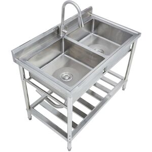 About this item: 【NSF Certified 304 Stainless Steel】: Crafted from durable 304 stainless steel for outstanding corrosion and oxidation resistance. Features a smooth, polished surface that’s easy to clean and maintain. 【Clog-Preventing Drainage】: Multi-layer sealed drainage pipe with detachable filter basket effectively prevents food and debris blockage. Thickened PP pipes provide fast, flexible, and deformation-resistant drainage. 【Versatile Utility Sink】: Spacious design accommodates ingredient prep, dishwashing, laundry, or pet cleaning. Includes a safe tool storage area out of children’s reach and an open lower shelf for accessories, with a hollow design to prevent water accumulation and simplify maintenance. 【Wide Application】: Perfect for kitchens, bars, restaurants, dessert shops, garages, gardens, backyards, and more. Ideal for both commercial and home use. (Wear protective gloves during installation.) FXSGER
