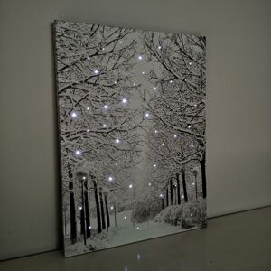 Battery Operated Fibre Optic Canvas Wall Art. Picture depicts a festive scene of a clowder of cats sat watching Santa and his Reindeer on a snowy Christmas Eve. Battery pack requires 3 x AA batteries (not supplied) and is stored inside the back of the canvas so it sits flush against the wall. The canvas has a built in vibration sensor so the lights turn on and off by gentle touch. Hangs on your wall for Christmas, and the picture comes to life with beautiful sparkling effects. Approximate dimensions; H30 x W40 x D2cm. Suitable for indoor use only.