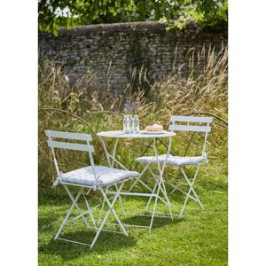 From weekend brunches to dining in the sun. From countryside patios to city courtyards. This French inspired Rive Droite Bistro Set is versatile, fully foldable and lightweight. Bring that little touch of Provence to your own back garden. Weight limit per Chair: 120kg. Weight limit for Table: 40kg. Set folds flat for easy storage. Fully assembled. ** No cushions supplied ** Colour: Chalk. Crafted in Powder Coated Steel. Suitable for indoor and outdoor use. Weatherproof. We recommend that all outdoor furniture is covered or stored under cover if left outside for long periods of time or during the winter months. Ensure that the furniture is completely dry before covering.