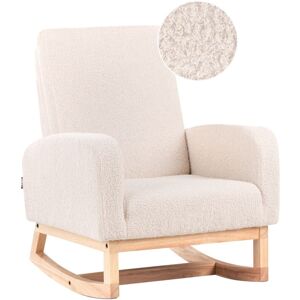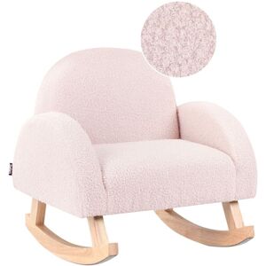 Fabric Rocking Chair with Wooden Rockers. Let your child unwind in style with this charming high-back rocking chair. Wrapped in cosy, textured bouclé fabric and supported by solid wooden rockers, it’s perfect for story time, quiet moments, or just swaying gently after a day of play. The tall backrest offers extra support, making it a comfy and safe spot for little ones to relax and recharge. Details: Product Type: Kids Rocking Chair Style: Scandinavian General Color: Pink, Brown Shade: Pastel Pink Material Type: Fabric Main Material: Boucle Additional Material: Rubberwood Legs material: Wood Seat Material: Boucle Material Composition: 100% Polyester Armrests: Yes Stackable: No Dimensions: Armrests Height: 45 cm Depth: 70 cm Seat Height: 31 cm Width: 54 cm Height: 71 cm Seating Surface: 40x42 cm Weight: 8 kg Weight Capacity: 70 kg Offer Includes: 1 x Rocking Chair Key Features: Rocking Function, Cosy and Comfy, Great Addition to a Nursery or Child's Bedroom, High-Quality Materials,