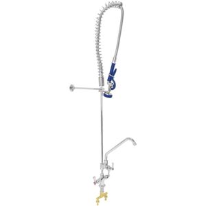 This pre-rinse faucet includes a 38 inch flexible steel hose with a 9 inch water control valve and a flow rate of 1.42 GPM, making it easy to pull out and spray across different compartments. Plus the 12 inch add on faucet can be used separately, to fill up the sink and complete your washing – making this commercial kitchen tap ideal for all uses. Use the included 12 inch wall bracket to easily secure this spring action flexible gooseneck hose & faucet to a wall and mount to your sink using the twin pedestal. Pre-Rinse Your Washing Up Includes FREE 2 x 500mm long tap connectors Pull out & flexible spray hose with a flow rate of 1.42 GPM & a lever handle 12 inch add on faucet – use the additional tap to fill up the sink Includes sprayer hook – this handy hook tucks the spray hose head out of the way when not in use Labelled mixer faucet handles – colour coded for hot and cold 12 inch wall bracket – holds the hose upright and away from the wall Made from durable 304 stainless steel and