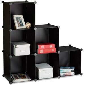 This tiered shelving unit gives you two practical functions in one. Store your books and CDs or even clothes in 6 spacious shelves. Or use it as a classic room divider to give your rooms a whole new perspective. The staircase shelf with non-woven shelves can be assembled quickly and easily using a plug-in system without compromising on stability. If required, the staircase shelf can be assembled into different shapes and adapted accordingly. The shelving unit is available in both black and white! Please note the different sizes of the shelves and side panels when assembling. The product images and instructions will help you. Details of 6 Section Staircase Shelving Unit - Overall dimensions H x W x D: approx. 109 x 106 x 30 cm - Size per shelf H x W x D: approx. 32 x 32 x 32 cm - Shelf: Laminated fleece and PE film - Connectors: Plastic - Connecting tubes: Powder coated steel - Max. load per shelf: approx. 8 kg - Available in black or white Practical Room Divider - Quick and easy to