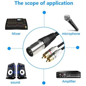 XLR Male to 2 Male Stereo Audio Cable Connector Y Splitter Cable (1m/3.3ft) for Microphone Mixer Console Amplifier. Standard XLR Male to 2 Male Audio Cable. Refined copper material to enhance signal clarity, provide clear and pure sound. Metal plug for anti-resistance and high durability. For connecting and transferring signal between mixers, microphones, recorders, amplifiers, sound card, speaker. Color: Black Material: PVC+ Copper Size: Length: about 2 meters Package Contents: 2 x Audio Cable Only the above package content, other products are not included. Note: Light reflection and different displays may cause the color of the item in a little different from the real thing. The measurement allowed error is +/- 1-3 cm.