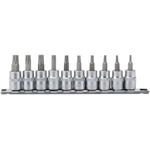 Expert Quality , 10 Draper TX-STAR® security socket bits, 48mm long All sockets manufactured from hardened and tempered chrome vanadium steel with sand blasted bits of S2 silicon steel Each socket has a knurled ring for extra grip Supplied on a steel socket retaining rail Display packed This is a Draper product.