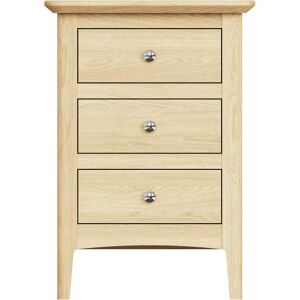 The Newark Ash 3 Drawer Bedside combines durability and style in a practical design. Expertly crafted from a mixture of durable ash wood, pine and MDF, it features traditional dovetail joints for enhanced strength and longevity. The natural lacquered ash finish highlights the rich grain of the wood, adding a refined touch to its appearance. With three spacious drawers, this bedside table provides ample storage for keeping your essentials within easy reach. Its clean lines and Scandi-inspired design, featuring tapered legs and a contoured top, make it a versatile piece that complements both modern and classic interiors. Delivered fully assembled, it’s a convenient and enduring addition to your bedroom. Hybrid Ash wood, pine and MDF construction for superior durability and craftsmanship. Natural lacquered ash finish showcasing the wood’s grain. Polished chrome metal knob handles Three spacious drawers offering generous storage space. Traditional dovetail joints ensuring added strength. Scandi-inspired design with tapered legs and a contoured top. Delivered fully assembled, ready for immediate use. Dimensions: Width: 42cm Depth: 38cm Height: 59.5cm Lark Manor