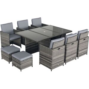 The Outsunny 11 pieces furniture set creates an inviting setting, ideal for patio, porch, poolside and garden. The furniture set is designed from a beautiful wicker material on a reinforced aluminium frame. The wicker and tempered glass table looks very fashionable and create a modern style for your outdoor living area. It is suitable for any occasion, family dinners, parties and more.