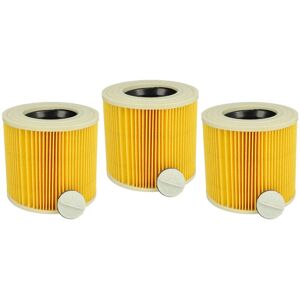 vhbw - the clever way Set of cartridge filter for your standard-, wet- or multipurpose vacuum cleaner - Replace your filter regularly to maintain maximum dust extraction - Precision-fit for easy removal & exchange These powerful, high-quality filters are perfect for vacuuming up dust and coarse dirt particles in your home, garage or workshop. Change the filter regularly to keep the exhaust air clean, increase the service life of your vacuum cleaner and maintain high suction power. With their precision-fit dimensions, the filters can be installed and removed easily. CONTENT OF DELIVERY: - 3x vacuum cleaner filters - 3x cap with bayonet mount TECHNICAL DETAILS: - External diameter: 18.5 cm - Internal diameter: 14.3 cm - Height (with cover): 18.2 cm - Colour: black / yellow - For dry vacuuming - Without internal steel braiding - Flexible design Replacement for Grizzly 91092030 vhbw - High-quality replacement parts and accessories to prolong the service life of your electronic devices.