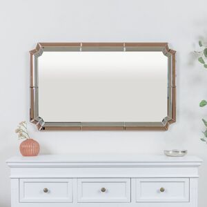 This Rectangle Pink Glass Art Deco Wall Mirror 60cm x 100cm is a beautiful, vintage inspired wall mirror, perfect for fans of art deco style and pink home decor. Made of glass, wood and metal. this mirror has rectangle shape and comes with a bevelled glass design, with pale pink glass on the outer mirror. This striking wall mirror that will add a touch of ornate, vintage glamour to any room. This mirror would make a stunning addition to any living room, hallway or bedroom space. This mirror is also available in Green. It can be wall mounted both vertically and horizontally via hooks on the back. Fairmont Park