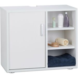 Looking for a chic under-sink basin for your bathroom? This storage cabinet with one door is a reliable helper when it comes to hiding various bath items from prying eyes in a most elegant fashion. With the siphon cut-out, you can place the vanity unit under any standard basin. 3 Open shelves and a large cabinet with door provide ample storage space. You can use it for all toiletries and items that need to be in close range, such as towels and toilet paper. Under-Sink Wooden Cabinet Details • Total size H x W x D: app. 51 x 60 x 32 cm • Top W x D: app. 60 x 30 cm • Siphon cut-out H x W x D: app. 26.5 x 6.5 x 7 cm • Door compartment H x W x D: app. 46.5 x 31 x 30 cm • Small compartments W x L: app. 24 x 28.5 cm • Ground clearance: app. 1.5 cm Wide Bathroom Cabinet • Material: MDF • Weight: app. 12.3 kg • Colour: Various designs • Maximum capacity: app. 20 kg Wash-Basin Vanity Cabinet with Door • For the kitchen or bathroom • With siphon cut-out • 4 x Compartments for additional storage
