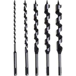 Carbon Steel Drill Bits Machined with, Perfect for Woodworking and DIY There are 5x different auger drill bits, including 6mm 10mm 14mm 18mm 20mm. You can choose the most available wood drill for woodworking. The self-directed threaded head of the wood auger drill bits can help the drill bit to be positioned accurately and quickly on the wood for easy drilling. The hex shank design prevents the hex shank from slipping during work, perfect for hand drills and bench drills. The solid center design makes the auger stable and solid while drilling, and the wide blade slot can achieve faster drilling, easier chip removal and smoother hole walls. This twist drill bit set is made of high quality carbon steel which is extremely durable, with extreme hardness and long service life.