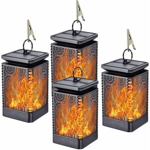 Color: black Material: ABS plastic Waterproof level: IP65 Product size : 3.5*3.5*6.7 inches Power source: Solar powered Battery: rechargeable 1500mAh Charging time: 6 hours Realistic flame effect: attractive design! The realistic and bright flickering flames inside are so attractive and the warm yellow lights (1600k color temperature) create a welcoming ambience. These black hollow artistic looking solar flame lights will become a beautiful distinctive decoration for your table, shelf, stairs, aisle, wall, patio, porch, etc. SAVE ENERGY AND SAVE MONEY: Flame lantern lights are powered by solar energy. When you place them in the sun, the high-efficiency solar panels on top of the lights absorb solar energy and convert it into electrical energy. No cables are required. . They can glow for 12 hours or more after being charged in the sun for 4-6 hours Easy to use: easy to install and use! With a durable hanging ring and metal clip, you can hang this solar lantern anywhere. After turning