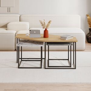 Bring versatile style and function to your living room, office, or hotel with this nesting Adelane set, featuring three unique tables in white marble effect, retro grey, and oak finishes. Crafted from high-quality engineered wood with sturdy metal legs, this set is built to last. The nesting design allows you to configure the tables to suit your needs, whether you're using them all together for a spacious Adelane, or nesting them individually for side tables or end tables. Product Dimensions Width: 110cmxDepth: 60cmxHeight: 48cm Weight: 13.98 kg. Durable construction: Made from high-quality engineered wood with sturdy metal legs for long-lasting use. Borough Wharf Table Top Colour: Sapphire Oak/Marble White/Grey