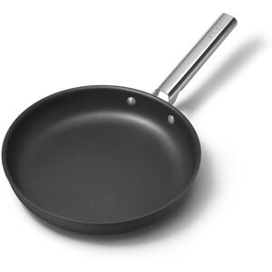 Designed and manufactured in Italy, featuring Smeg's iconic retro design, this is a cookware range you can be proud to display in your kitchen. This low-sided diameter frying pan is ideal for dishes such as pan-fried risotto. The low sides make it easy to use spatulas or other kitchen utensils during cooking or toss food and transfer it directly onto the plate. Its aluminum body guarantees excellent cooking results whilst the non-stick coating allows fewer oils and fats to be used for healthier cooking. It is also very easy to clean. The patented base allows compatibility with all types of hobs; gas, electric, ceramic, and induction, for maximum versatility. It is possible to put all cookware in the oven up to a temperature of 250°C/480°F and they can also be put in the dishwasher for easy cleaning. The long stainless steel handle offers a comfortable and safe grip. This high-quality frying pan is available in cream, red, and black, the finishes and colors perfectly coordinate with other products within the range. Smeg Colour: Matte Black, Size: 28 cm