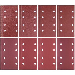 SANDING SHEETS FOR SANDERS Sanding sheets for sanders 93 x 185 mm 8-hole in professional quality for commercial or private use. Set of 35 8-hole sanding sheets: 5 sheets with grain 40/60/80 + 10 sheets with grain P120/P240 GREAT FLEXIBILITY You will receive 35 sheets distributed as follows: set of 5 sheets for grain P40, P60, P80 and 10 sheets for grain P120 and P240. This means you have the right sandpaper for every situation. FOR UNIVERSAL SANDERS The sanding sheets are suitable for the 93 mm x 185 mm sander as well as screw clamps and hand sanding blocks. COMPATIBLE MATERIALS SURFACES made of metals, non-ferrous metals, steel and alloys, wood and wood materials, plastics and polymers, stainless steel. Scope of delivery 35 sheets of sandpaper for sanding machine 185 x 93 mm, divided as follows: 5 x P40, 5 x P60, 5 x P80, 10 x P120, 10 x P240.