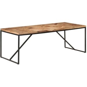This wooden dining table adds an industrial look and makes an excellent addition to your kitchen and dining room. Handmade out from solid acacia and mango wood, this dinner table is greatly stable and durable. The black powder-coated steel legs provide extra stability. The sturdy tabletop features a chevron and mosaic design, which makes it a special decoration to your interior. It also can be used to place drinks or snacks. Important note: Colours and grains vary from piece to piece, making each piece unique. The delivery is random, ensuring the exclusivity and individuality of your product. Material: Solid acacia and mango wood with a natural finish, steel with black powder coated finish Dimensions: 200 x 90 x 76 cm (W x D x H) Assembly required: Yes SKU: 323554 EU responsible party Haba Trading B.V. Mary Kingsleystraat 1 5928SK Venlo The Netherlands Compliance-safety@vidaxl.com