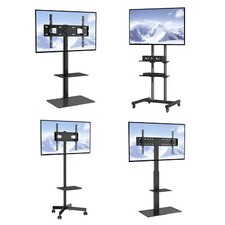 60-inch Mobile TV Stand Cold-rolled Steel Material & 3-level Height Adjustment & 15° Swivel The cold-rolled steel material is stable enough. With a non-suspension design, it will not damage the wall and can be easily moved to other spaces with universal wheels. The adjustable height can meet your different needs. Support upward tilt adjustment of 15°, suitable for multi-angle viewing in the living room, bedroom, or kitchen. Elevate your viewing experience with VEVOR! Enhanced Safety & Stability Enjoy Comfort at Any Height Flexible Viewing Angle Quick and Easy Assembly Universal Compatibility Features & Details Enhanced Safety & Stability: Our portable TV stand is built with high-grade cold-rolled steel, ensuring superior load-bearing capacity and stability. It is designed with your safety in mind, so say goodbye to worries about wobbling or tipping. Enjoy Comfort at Any Height: Our rolling TV stand offers three levels of height adjustment to suit different seating arrangements. Plus,