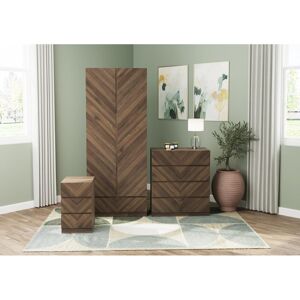 This three piece bedroom set features the iconic Herringbone inspired wood-grain design on the door and drawer fronts and offers a practical and stylish solution for your bedroom storage. This set includes a three drawer bedside table, four drawer chest and two door one door wardrobe. This set arrives ready to assemble with instructions included. Search Kascha to view the full range. Alpen Home Colour: Walnut