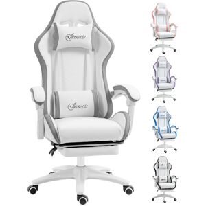 Feature: 135° reclining back - lean back at an angle you want. Manual footrest to elevate lower body 45.5-53.5cm adjustable height Removable head and lumbar pillow included White faux leather upholstery, with a coloured border Five wheels and swivel seat works with your body movements Maximum load 120kg, assembly required Specification: Colour: White, Blue Materials: PU Leather, Sponge, Nylon, Steel Overall Dimensions: 65W x 65D x 121-129H cm Reclining Dimensions: 65W x 137D x 105H cm Max Recline Angle: 135°; ● Seat Size: 50W x 49D x 45.5-53.5H cm Armrest Height (to seat): 23H cm Backrest Size: 80L x 53.5W x 5D cm Lumbar Support Size: 30L x 19W x 8D cm Headrest Size: 28L x 19W x 10D cm Footrest Size: 34L x 21W x 6D cm Weight Capacity: 120 kg Item Label: 921-618V73WT 1 x Gaming Chair 1 x Manual
