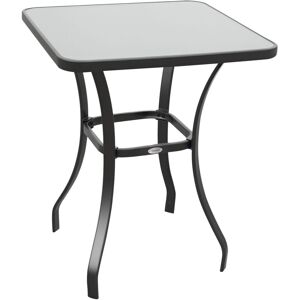 Bring your favourite people together outdoors, thanks to this Outsunny square dining table. A powder coated steel frame for a strong and supportive core, fitted with a glass tabletop. The glass is tempered for extra strength to ensure a safe dining surface - finished in a marble effect for beauty. Patio table is complete with adjustable feet for balance. OUTSUNNY Square Outdoor Dining Table with Marble Effect Top Steel Frame for Patio in Grey