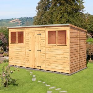 Part of our Garden Value range of overlap sheds. This Pent shed is a very practical design and manufactured from high grade, slow grown, FSC approved, North European pine overlap cladding boards over sturdy 34mm square framing with OSB roof and floor. With interchangeable fixed, acrylic windows and large single door. Dip treated base coat preservative ready for top coating. All fixings, roof felt and assembly instructions are provided. Before you assemble your building, you will need a base which is flat and level to a sufficient size. Grass, soil or gravel are not sufficient as they will move with the weight of a building. Shire GB