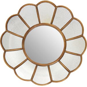 This mirror's scallop frame is made from strong metal, its gold coloured finish making it ideal for styling with warm metallic lighting and home accessories. Gently curved mirrored petals blossom out from its circular reflective centre, resembling a flower in bloom. A beautiful accent piece for boutique hotel-inspired home furnishings. This product will be shipped to your address with our premium delivery service to ensure you are fully satisfied with your purchase. As a result, this will slightly increase delivery time.