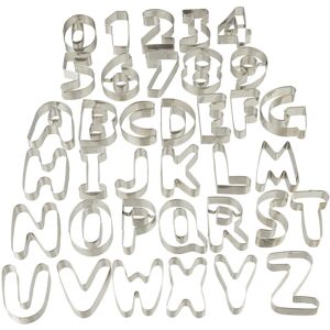 This set of cookie cutters will help you decorate your baked goods with numbers and letters. The 36 biscuit moulds are not only the ideal tool for Christmas baking. You can use them all year long to decorate cakes or cookies with names, good luck wishes or other nice messages for friends and family. The numbers are perfect for birthday cakes. Whenever you decide to use them, they surely will put a smile on everyone’s face. Set of 36 Cookie Cutters in Detail - Size each H x W x D: app. 7.5 x 7 x 2 cm - Weight of each mould: app. 14 g - Set contains 26 letters and 10 numbers from 0 to 9 - Material: Steel - Colour: Silver Biscuit Moulds with Numbers & Letters - Decorate cakes with original messages - Perfect to write names, good luck wishes and more - Numbers are ideal for birthdays - Not only perfect for Christmas, but your the whole baking year - Made of hard-wearing, food-safe material Included in Delivery - 36x Cookie cutters (A-Z letters, 0-9 numbers) - Decorative items shown in