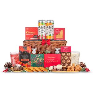 Introducing "Christmas by the Fire" - a luxurious and elegant hamper designed to create unforgettable festive moments. This exquisite selection of delights has been thoughtfully curated to indulge and delight even the most discerning palates. Indulge in the rich flavours of the Eleve Marsanne Viognier and Eleve Pinot Noir, both sourced from the esteemed Languedoc region. These wines offer a perfect balance of sophistication and taste, elevating your holiday celebrations. Contains: Eleve Pinot Noir 75cl Eleve Marsanne Viognier 75cl Folonari Prosecco 75cl Grahams 10 Year Old Tawny Port 20cl Belvoir Spiced Ginger Punch 750ml Popcorn Shed Christmas Pudding Popcorn Valley Bakery Traditional Brandy Christmas Pudding 112g Valley Bakery Traditional Christmas Dundee Cake Valley Bakery Artisan Christmas Chocolate Yule Cake Excelcium Tradition Pralines 180g Ballancourt Pork Liver Pate with Cognac Valley Preserves Strawberry Jam 130g Valley Preserves Medium Cut Marmalade 130g Yorkshire Crisps Tomato, Basil & Mozzarella 95g Grate Britain Smoked Dorset Red Crackers 45g Cartwright & Butler Olive and Garlic Wheat Flatbread Cartwright & Butler Crispy Chocolate Wafer Rolls with Cocoa Cream Polar Bear Festive Tube 240g Walkers Traditional Christmas Mince Pies Seasons Greetings English Tea in Tin Season's Greetings Afternoon Tea Caddy Farmhouse Cranberry, Orange and Milk Chocolate Tin Harvey and Mason 6 x 12" Nutcracker Crackers Traditional Tartan Fleece Blanket 120 x 150cm Large Handwoven Wicker Hamper Basket