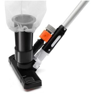 Pool spa pond mini jet vac vacuum cleaner, No electric power needed, Use water pressure from garden hose to vacuum. It produces suction to collect stains, leaves and stones from the bottom of the pool. Perfect for frame aboveground/Inflatable pool, spa, hot tub, pond, fountain vacuuming. The water pressure of the hose produces a venturi effect, which can suck leaves and other debris into bag. It is very suitable for cleaning SPA, above-ground pools, ponds, fountains, inflatable pools and large swimming pools. Simple design and easy to assembly, After use please turn off the faucet to avoid splashing. Standard: EU Standard Material: plastic+metal colour: black Package Contents: 1 x Quick connector 4 x Section Pole 1 x Scrub Brushes 1 x Leaf Bag Only the above package content, other products are not included. Note: Light reflection and different displays may cause the color of the item in the picture a little different from the real thing. The measurement allowed error is +/- 1-3cm.