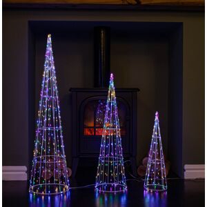 Illuminate your Christmas decor this year with this set of 3 dewdrop Christmas cone trees. This stunning eye-catching set is perfect for anywhere within your living space and is sure to bring the magical feeling of Christmas to your home. The Christmas cone trees are freestanding allowing you to place these on most flat surfaces to infuse your Christmas decor. With a white metal frame, 654 multi-coloured LEDS illuminate the Christmas tree cones to enhance the festive spirit within your living space. Mains powered with a generous 5 meter clear cable from product to plug and suitable for indoor use only. Product Dimensions Large Cone Height: 81cm Diameter: 20cm Medium Cone Height: 61cm Diameter: 16cm Small Cone Height: 41cm Diameter: 12cm Clear Cable Length: 5m