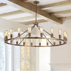 This 20-light large wagon wheel farmhouse chandelier shows an impactful and innovative design. With its beautiful wagon wheel design, this chandelier will be a focal point in any area and become an instant conversation piece among family and friends. This vintage chandelier will add a touch of elegance and rustic charm to your home. August Grove Finish: Black