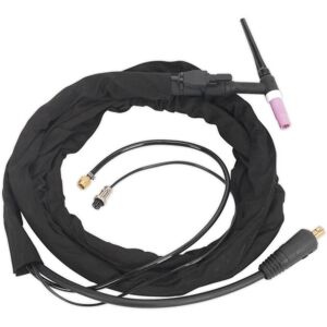 Inverter TIG torch with 2-pin connector and push-button for HF (High Frequency) start welding. Suitable for use with Model No. TIG160. Supplied with three ceramic nozzles, three collets, collet holder/diffuser, short end cap, long end cap, two hose clamps, along with a tungsten welding electrode. Inverter TIG torch with 2-pin connector and push-button for HF (High Frequency) start welding. Suitable for use with Model No. TIG160. Supplied with three ceramic nozzles, three collets, collet holder/diffuser, short end cap, long end cap, two hose clamps, along with a tungsten welding electrode.