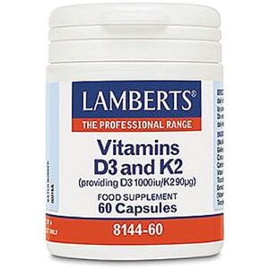 LAMBERTS Vitamin D3 and K2 - 60 Capsules LAMBERTS Vitamins D3 and K2 provides 1000 IU of natural vitamin D3 and 90g of vitamin K2 in the long-lasting menaquinone-7 (MK-7) form. Modern diets often lack enough vitamins D and K, which can contribute to health issues later in life. LAMBERTS vitamin D3 is absorbed well due to being suspended in sunflower seed oil, and their vitamin K2 is derived from chickpea protein for better bioavailability. High-strength formula Combined bone and immune support Small and easy-to-swallow capsules Suitable for Vegetarians Produced to pharmaceutical GMP Standards Made in the UK About LAMBERTS LAMBERTS is the UK's leading supplier of food supplements to Practitioners, GP's, Nutritionists and Pharmacists who use nutrition in healthcare. Their healthcare philosophy consists of sound science - they only develop health products supported by a valid scientific rationale, and always at the right potency for maximum benefit. LAMBERTS Vitamin D3 and K2 provides 1000iu (25mcg) Vitamin D3 cholecalciferol and an impressive 90mcg of Vitamin K2 in the form of Menaquinone (MK-7). Small easy to swallow capsules that are suitable for vegetarians.