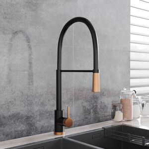 Make way for the slim lined and ultra-modern look of this kitchen faucet from Livingandhome. The flexible spray is held in place by a long black arm and offers 2 jets for extra functionality. Featuring a single-lever control for water temperature and flow, it is very easy to use with only one hand. Inspired by the latest trends, the luxurious black and rose gold finish offers unmatched style while its solid brass construction and ceramic cartridge ensure durability. Belfry Kitchen
