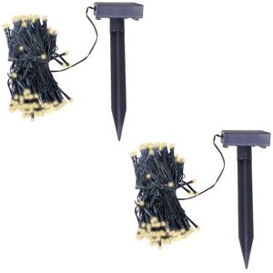 This pair of solar string light sets, each with 200 LED bulbs, is an ideal outdoor lighting solution. Each string light is equipped with a solar panel with a rechargeable battery that is charged by the sunlight during the day and uses the stored energy to power the string lights when they automatically turn on at night. Only 6 hours of sunshine each day is enough for nearly 8 hours of continuous lighting. Thanks to the 24-metre long string, you can decorate a considerable part of your garden. The sparkling LED bulbs will create a festive atmosphere. Delivery includes 2 string light sets. Specifications for each string light set: 200 LED bulbs (0,06 W each) String length: 24 m Solar panel: 2 V, 120 mA Battery: 1,2 V, 600 mA Economical Delivery includes 2 string light sets SKU: 274770 This appliance is not intended for use by person (including children) with reduced physical, sensory or mental capabilities, or lack of experience and knowledge, unless they have been given supervision or