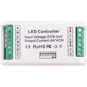 There are 4 output channels, can connect with single or RGBW lamps; Each occupied by 4 address. 0-100% dimming output, each channel 256 gray levels; Input Signal: standard DMX512/1990, address code set by DIP switches; Input Automatically adapt to DC9V ~DC24V;Output Max power load:192W(12V)384W (24V) 4A each channel max 16A,Use for LED strip,LED module,LED light. Colour:White Material:plastic Package Contents: 1 * LED Decoder Only the above package content, other products are not included. Note: Light reflection and different displays may cause the color of the item in the picture a little different from the real thing. The measurement allowed error is +/- 1-3cm.