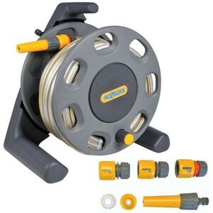 Hozelock Compact Reel & 25m Multi Purpose Hose & Nozzle Connectors 2412Lightweight reel holds up to 25m of 12.5mm hose.Supplied with 25m of multi purpose hose.Great hose storage solution.Freestanding - firm, stable base.Carry handle for easy transportationSpecifications: Includes 2 x hose end connectors1 x threaded tap connector1 x adjustable nozzle