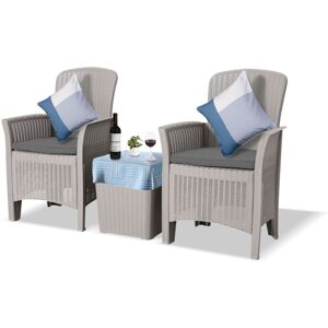 " Elevate your outdoor living experience with the Ophelia High Back Armchair Set – the ultimate blend of style, comfort and functionality. Perfect for any garden, terrace or balcony, this set includes two single armchairs and a convenient coffee table, offering a luxurious seating solution that maximises space while providing a relaxing retreat . Whether you're enjoying a morning coffee or entertaining guests, this outdoor lounge set creates the perfect atmosphere for every occasion. Designed for comfort and convenience, the Ophelia outdoor seating set features thick padded cushions and an ergonomically curved backrest , ensuring hours of relaxation. The high-back design provides additional support, making it ideal for long, leisurely afternoons outdoors. Additionally, the side table comes with a hidden compartment that is easily accessible by lifting the table top, providing a discreet storage space for your essentials, keeping everything within reach and neatly organised. Crafted