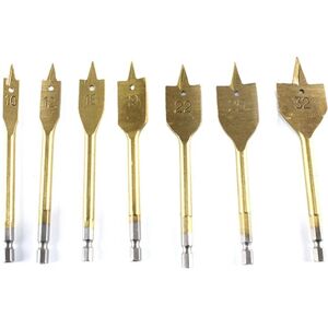 100% new and high quality Size: 10 12 16 19 22 25 32mm Uses: wood drilling color:Photo color Material:steel Package Contents: 1 x Flat Spade Drill Bits set(7pcs) Only the above package content, other products are not included. Note: Light reflection and different displays may cause the color of the item in the picture a little different from the real thing. The measurement allowed error is +/- 1-3cm.